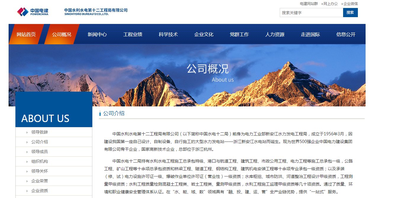 据中国水电十二局官网介绍,公司现为世界500强企业中国电力建设集团有限公司骨干企业,国家高新技术企业,总部位于浙江杭州。其称,在发展过程中,公司形成了能源电力、水资源与环境、基础设施和数智建造四大核心领域,成长为集勘测设计、工程建设、科技研发、装备制造、监理咨询、投资运营管理于一体的大型国有综合性建筑骨干企业。