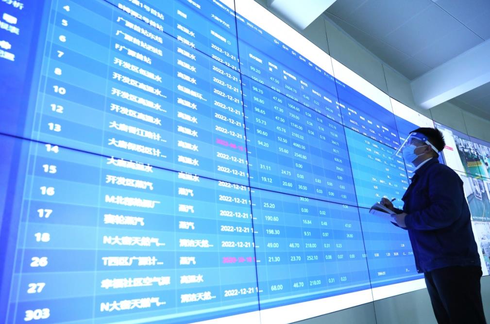 走进位于海王路上的能源供热公司供热指挥调度中心,只见控制屏幕上各个小区温度热力图、换热站运行状态、热源厂供热数据等信息都在不停地“跳转”,工作人员紧盯大屏幕,仔细记录着实时运行参数,并不时接听电话对各换热站进行调度。