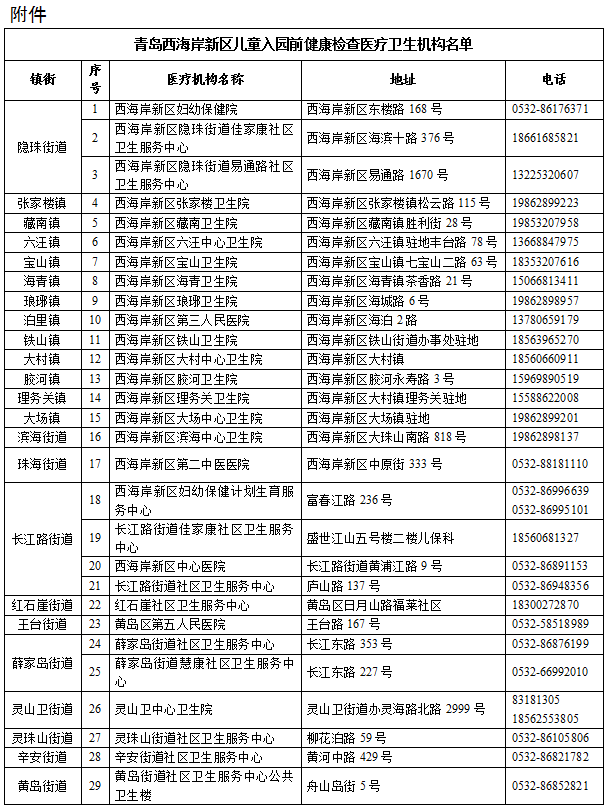 1.做好幼儿入园体检。新生入园前,需按照《青岛市贯彻〈托儿所幼儿园卫生保健管理办法〉实施细则(修订版)》(青卫妇幼字〔2019〕9 号)规定的项目进行健康检查,由家长自愿选择任意一所区级卫生保健主管部门认定的医疗卫生机构进行体检。