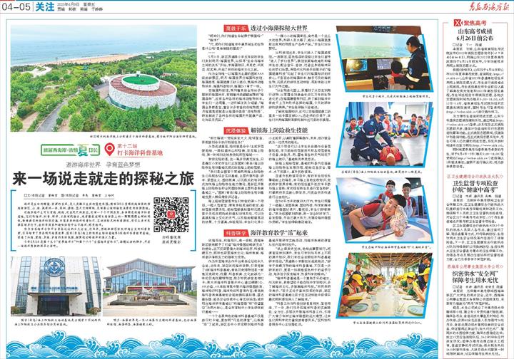 一个个各具特色的海洋科普基地不仅是旅行打卡地,更如同“行走的课堂”,让教育“活”了起来。新区各中小学定期到海洋科普基地开展研学实践活动,将海洋教育的课堂从校内延伸到校外。
