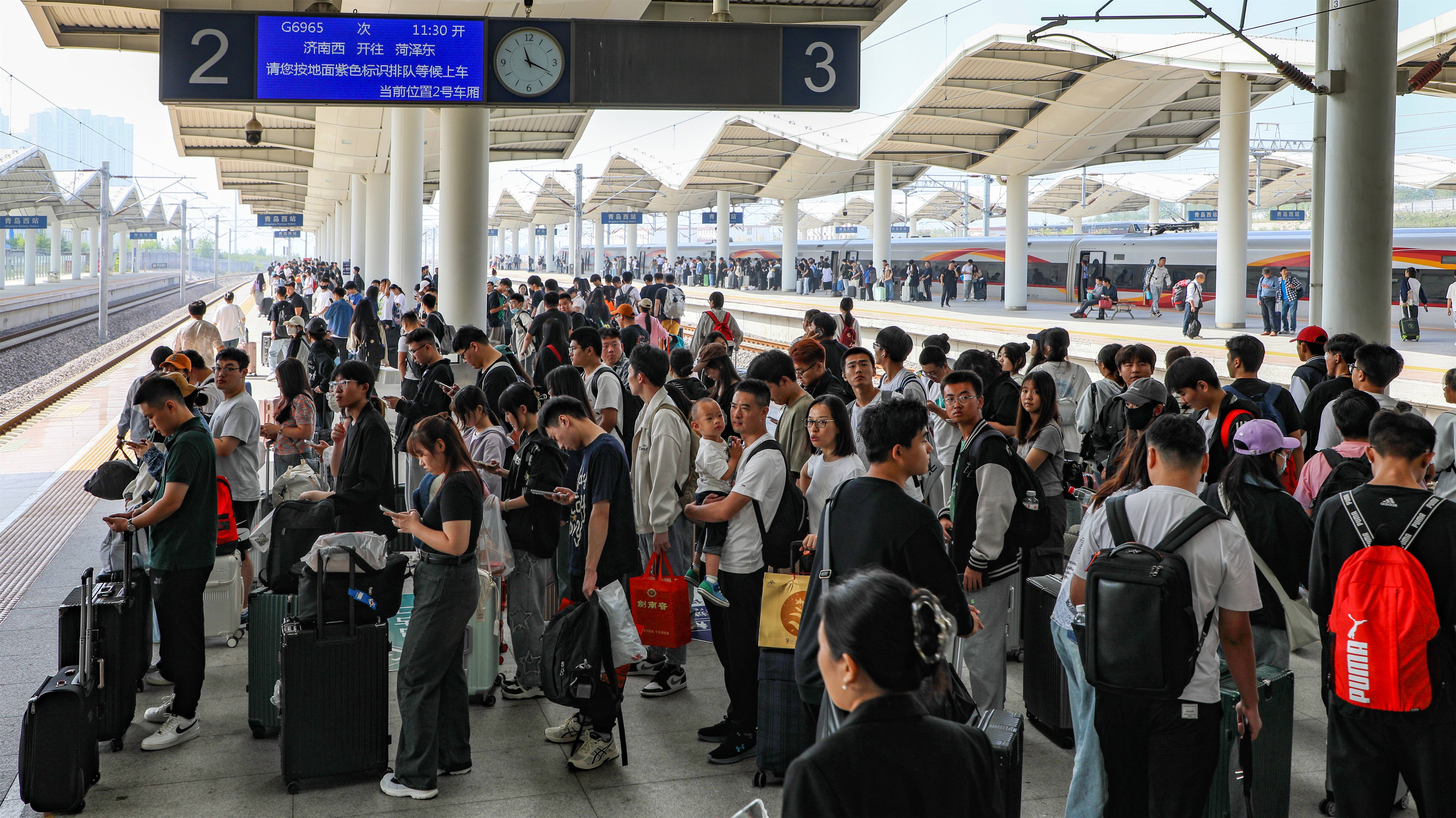 ◆青岛西站共计到发旅客23万人次,同比增长253.93%