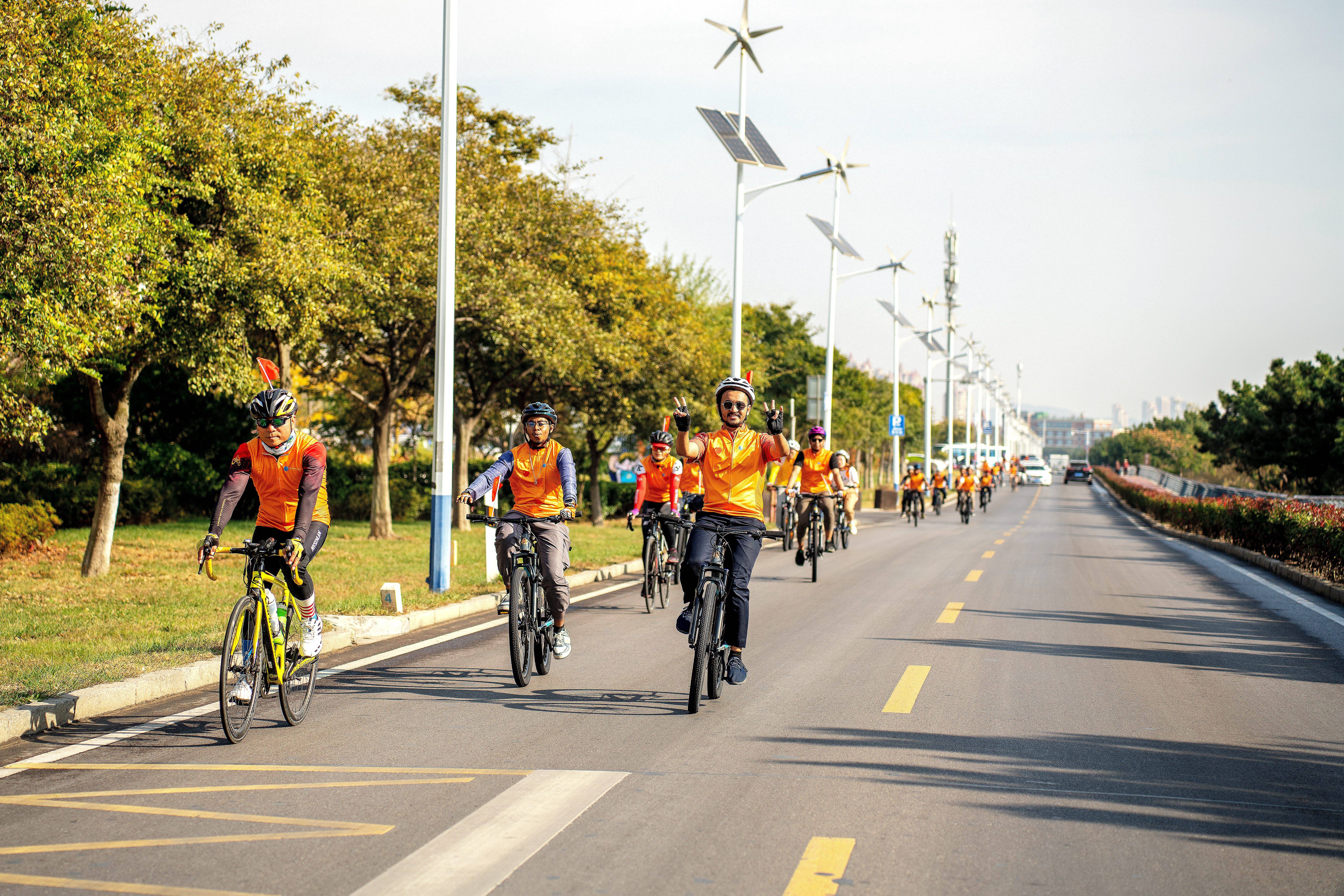 本次活动骑行路线共计15公里,整齐有序的骑行车队在西环岛形成了一道靓丽的风景线,沿途群众纷纷驻足点赞。中外骑手们也纷纷表示,此次骑行活动,通过绿色环保的出行方式引领着人才重新认识自贸、发现自贸,让更多海外人才能够乐居自贸。