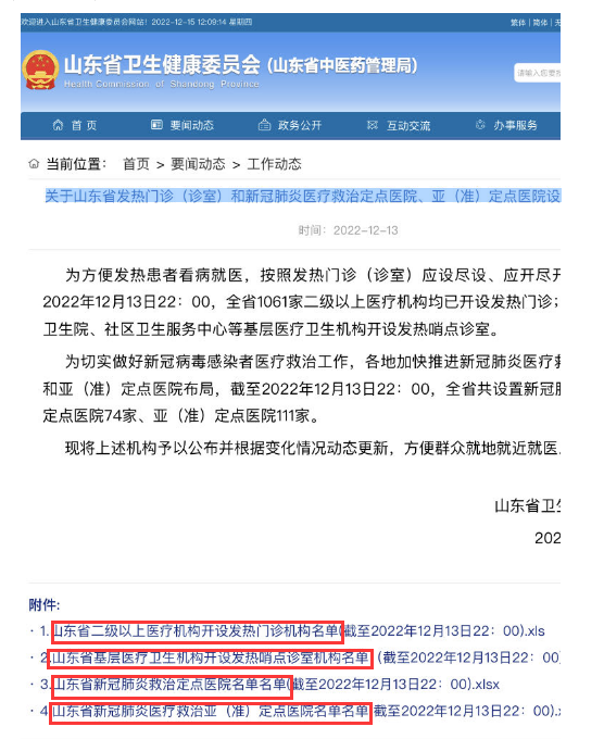 5.查询“关于山东省发热门诊 (诊室)和新冠肺炎医疗救治定点医院、亚 (准)定点医院设置”(如图)