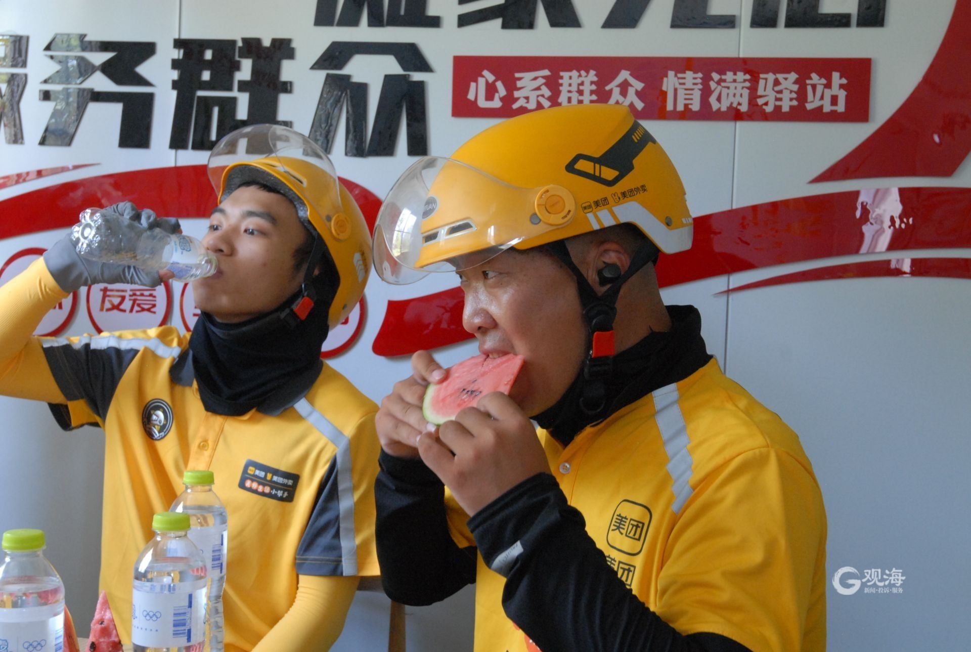 炎炎夏日,在即墨区通济街道即发阳光城社区的一处“清凉驿站”里,环卫工人张延芝和她的同事在吹着空调,吃着西瓜。今年,即墨区通济街道将昔日的核酸小屋变身“清凉驿站”,为环卫工人、快递员、外卖小哥等户外工作者提供短暂休息场所,带来盛夏里的清凉。