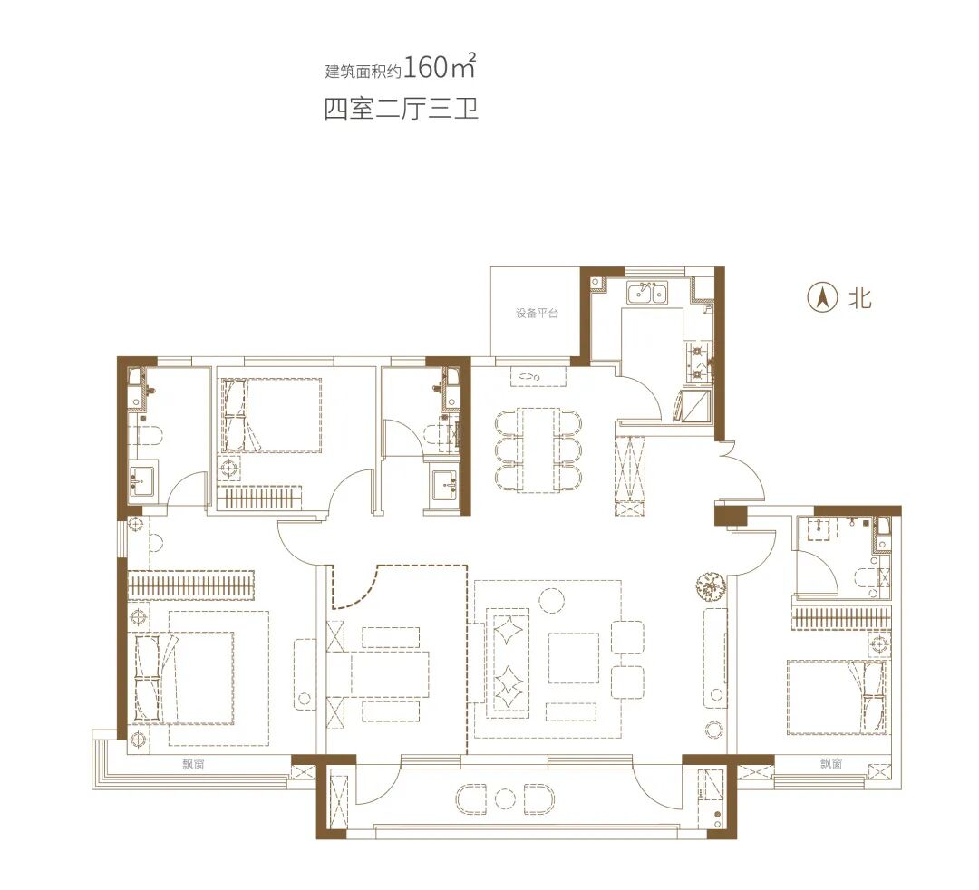 主卧套房设计,融合270°观景飘窗,悦享开阔视野;厨房&餐厅&客厅&阳台一体化设计,空间贯通敞亮。