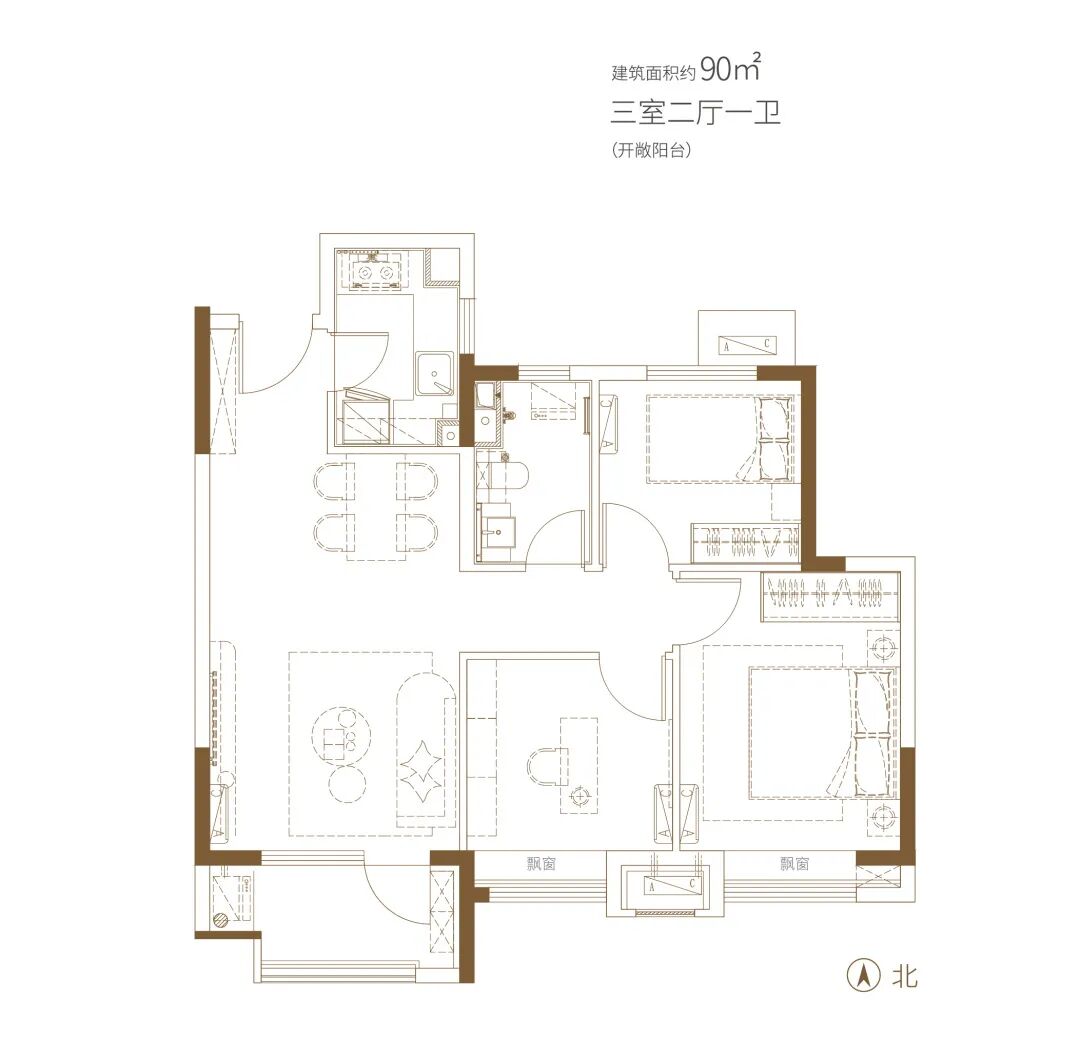 动静分离,三南向宽幕采光,全明通透,视野豁达。