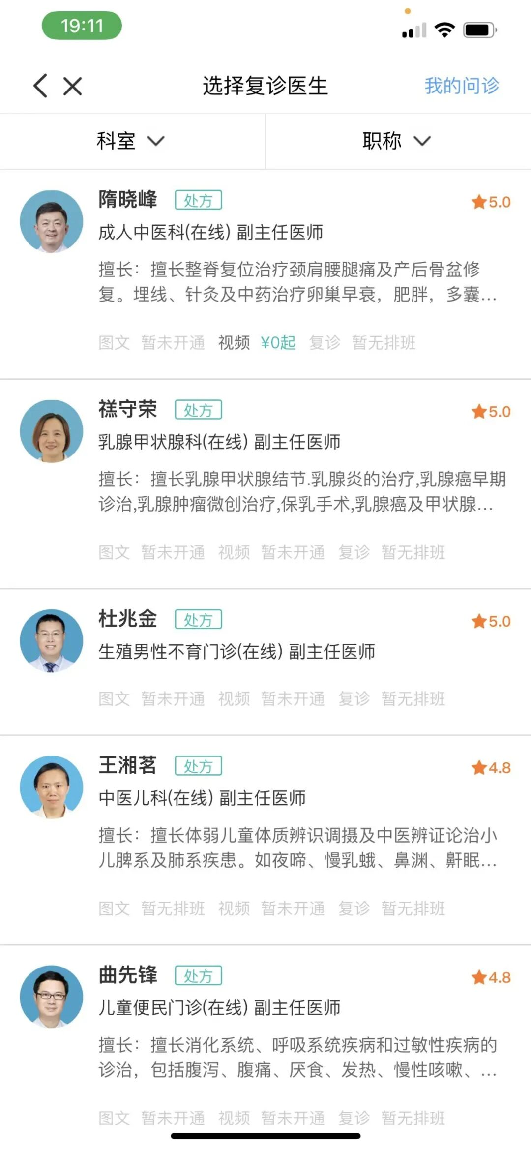 同时,复诊患者可以根据当日上线的科室医生选择您要复诊的医生,经接诊医生问诊开具药品处方,药师调剂药品后,会有快递将药品配送到家。