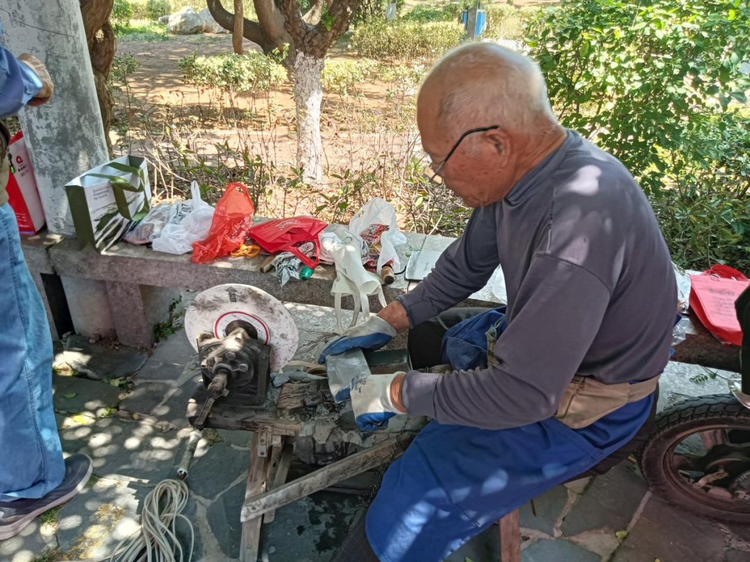 “磨剪子、戗菜刀喽!”熟悉的吆喝声吸引了众多居民。“现在想把刀磨一下都找不到师傅了,今天这个磨刀服务真好啊!这次便民活动真是办到了我们心上!”居民对老师傅的手艺纷纷竖起大拇指。
